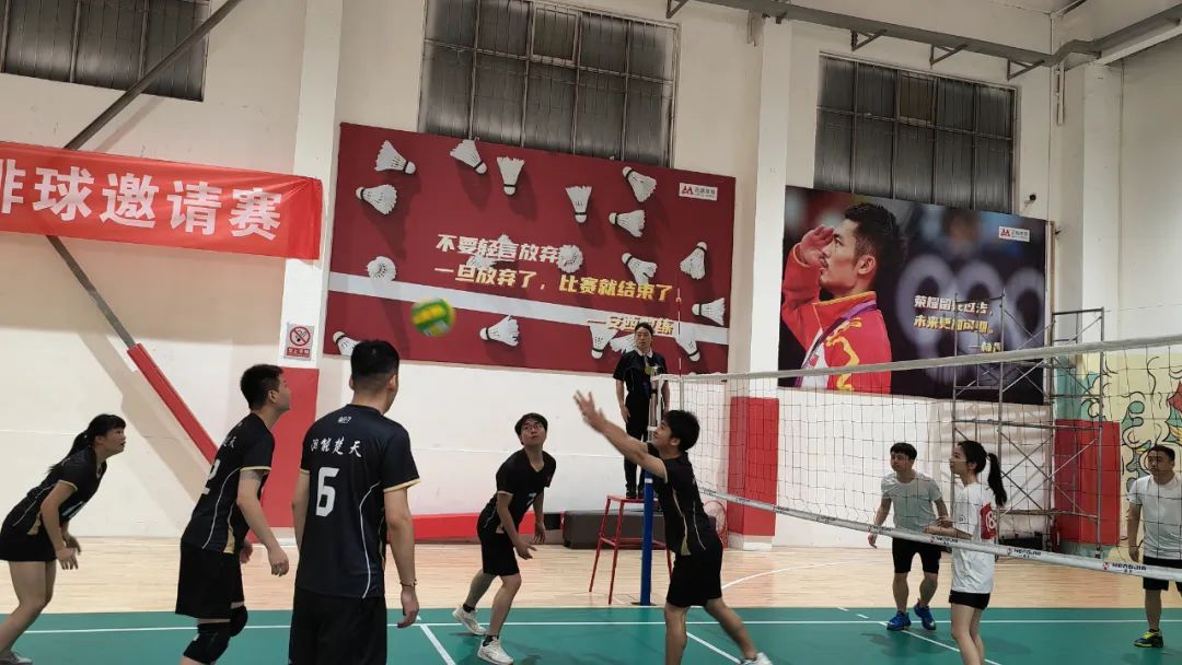 比賽采取男女混合團體賽,分為小組循環、交叉排名兩個階段進行。比賽期間,平時在公司里溫文爾雅的小伙伴們上了賽場個個精神抖擻、生龍活虎,大家傳球、扣球、攔網、滾地救球……,有模有樣,參賽雙方比分交替上升,扣人心弦的比賽場面屢屢出現,場外參賽的鄰隊自發組成的啦啦隊吶喊聲、歡呼聲也此起彼伏,歡聲笑語洋溢在賽場上空,給大家留下了珍貴的印記。